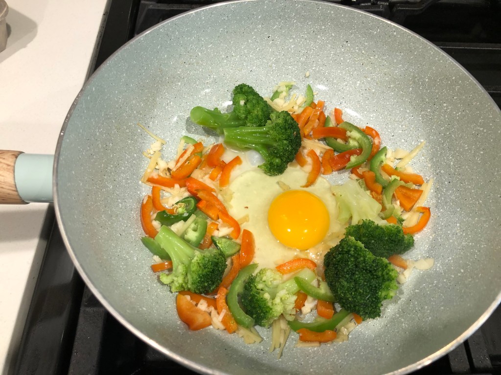 - veggies (I used broccoli, green onions, red bell pepper, and a jalepeno)