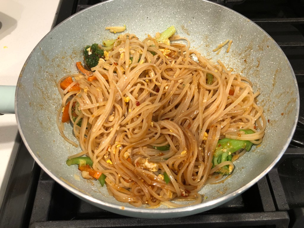 - Prepare all of your ingredients and set them aside because the cooking process goes very quickly- chop the veggies, cook the noodles, mix all the sauce ingredients together in a bowl.